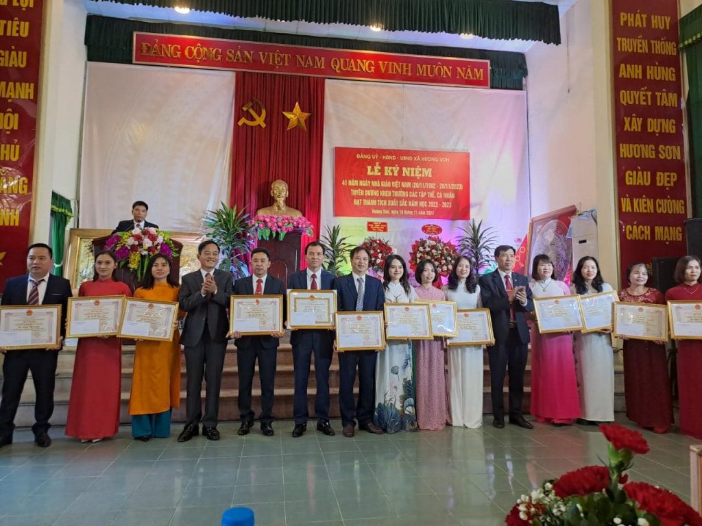 Sáng ngày 18/11/2023, tại nhà ủy ban nhân dân xã Hương Sơn đã diễn ra lễ tuyên dương khen thưởng các điển hình tiên tiến, nhà giáo mẫu mực tiêu biểu năm học 2022 – 2023