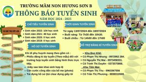 THÔNG BÁO: TUYỂN SINH NĂM HỌC 2024-2025 Mầm non Hương Sơn B là trường mầm non đạt chuẩn quốc gia đảm bảo việc xây dựng, duy trì và tạo ra những ưu thế đặc biệt về đội ngũ cán bộ giáo viên nhân viên; cơ sở vật chất; dịch vụ...